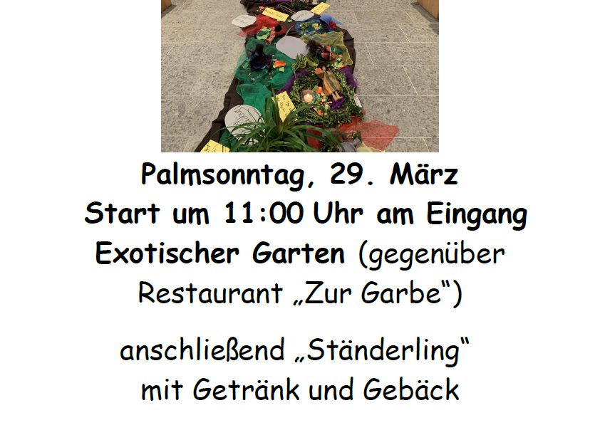 Palmsonntag, 29. März Start um 11:00 Uhr am Eingang